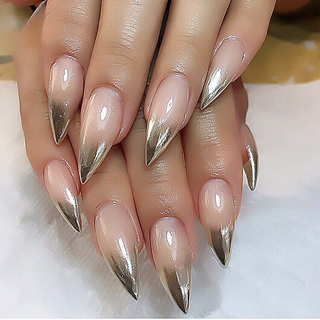 Uñas de stilletto con diseño de plata en las puntas